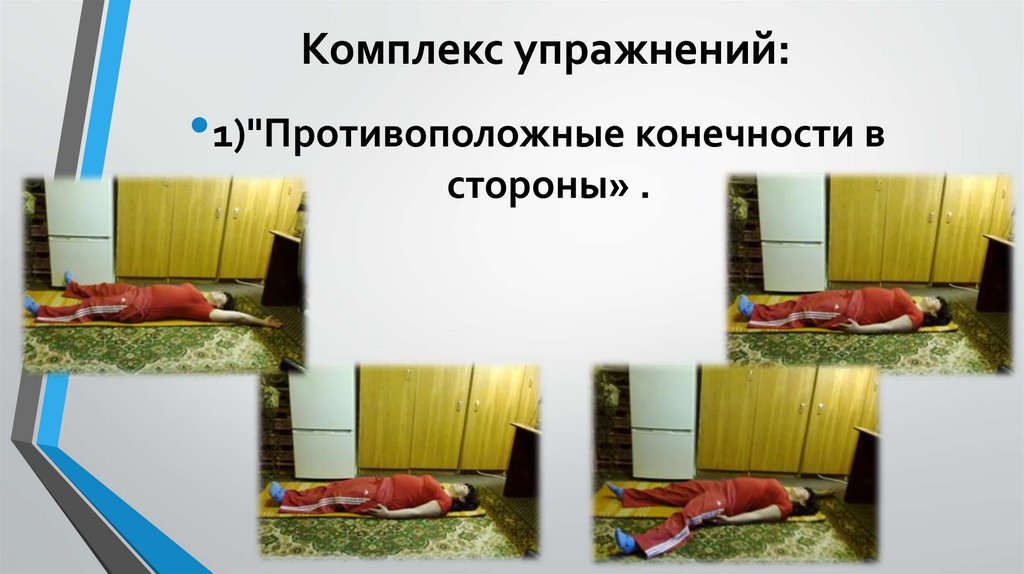 Комплекс упражнений:• 1)"Противоположные конечности в