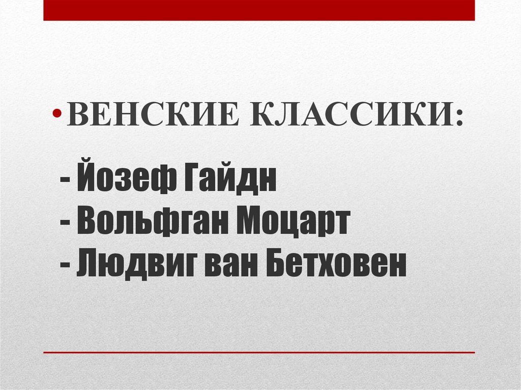 Венские классики: Йозеф Гайдн, Вольфган Моцарт, Людвиг ван Бетховен