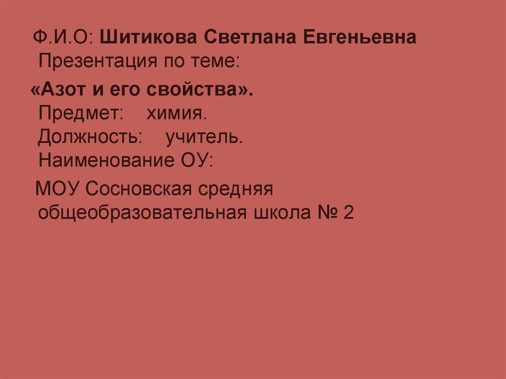 Ф.И.О: Шитикова Светлана ЕвгеньевнаПрезентация по теме: