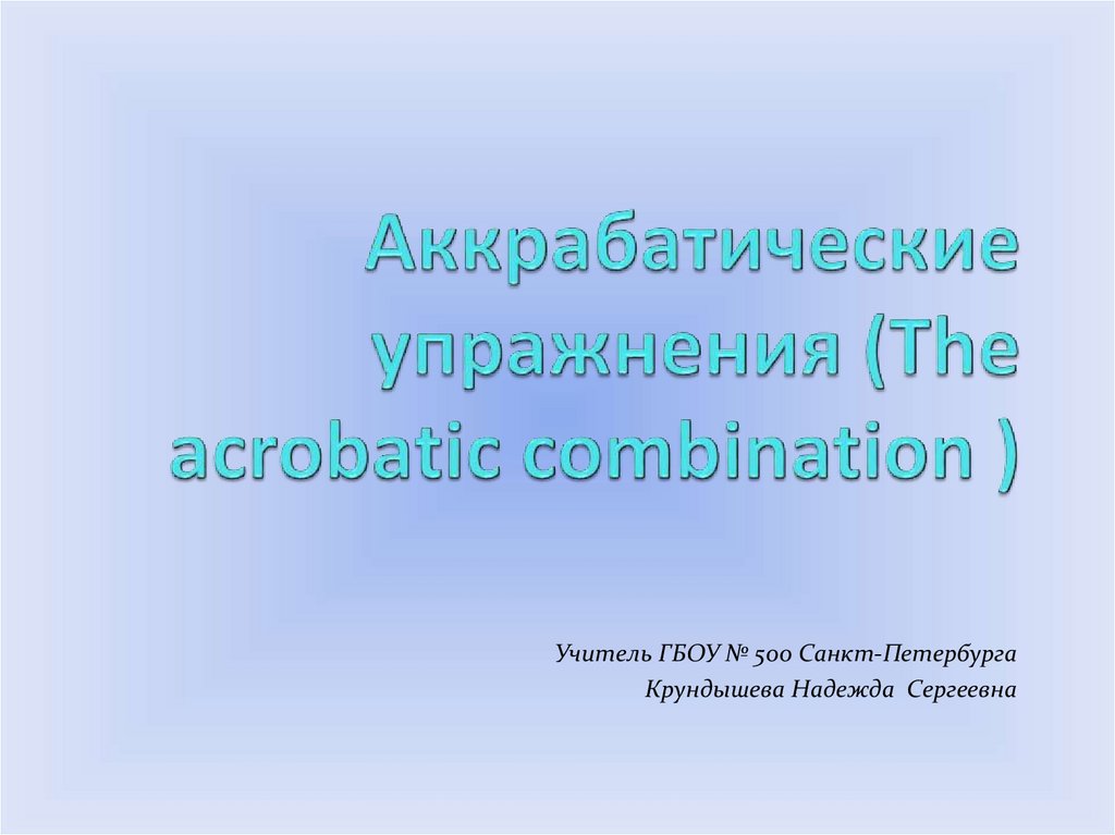 Учитель ГБОУ № 500 Санкт-ПетербургаКрундышева Надежда Сергеевна