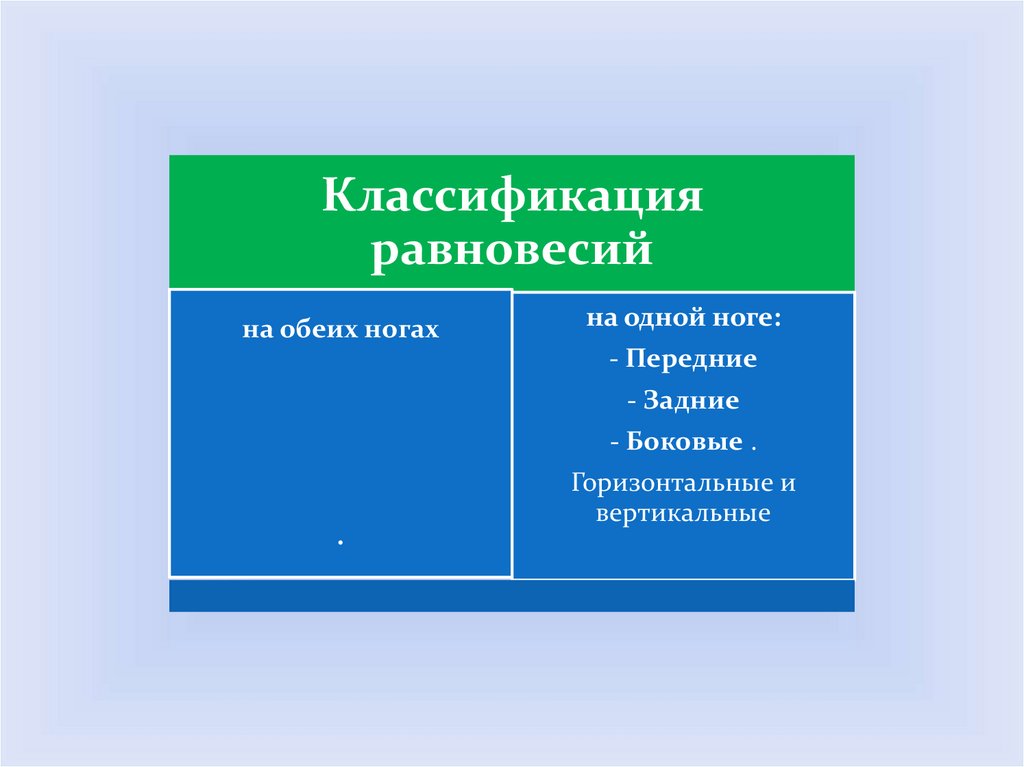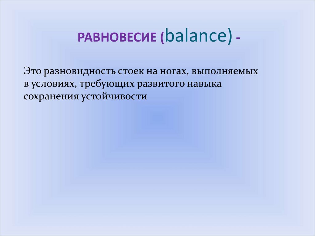 РАВНОВЕСИЕ (balance) Это разновидность стоек на ногах, выполняемыхв условиях, требующих развитого навыка