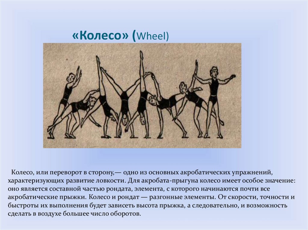 характеризующих развитие ловкости. Для акробата-прыгуна колесо имеет особое значение: