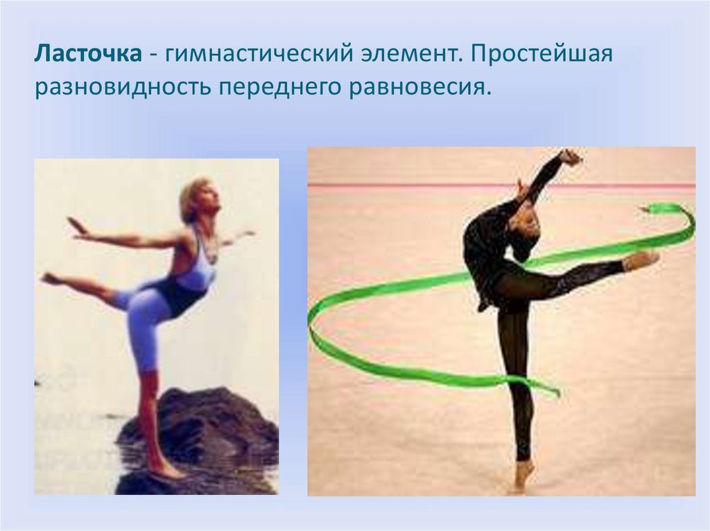 Ласточка - гимнастический элемент. Простейшаяразновидность переднего равновесия.