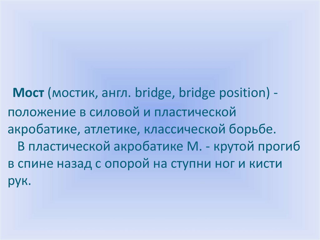 Мост (мостик, англ. bridge, bridge position) положение в силовой и пластическойакробатике, атлетике, классической борьбе.