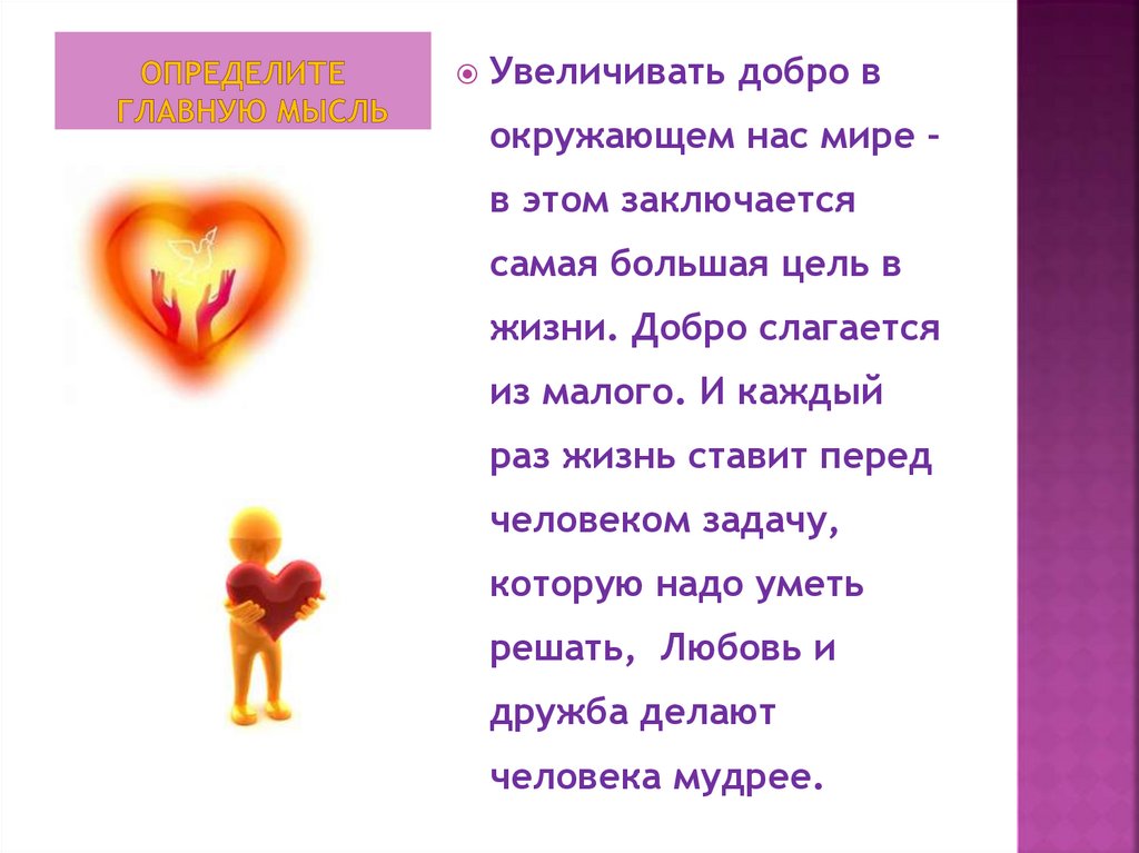 заключается самая большая цель в жизни. Добро слагается из