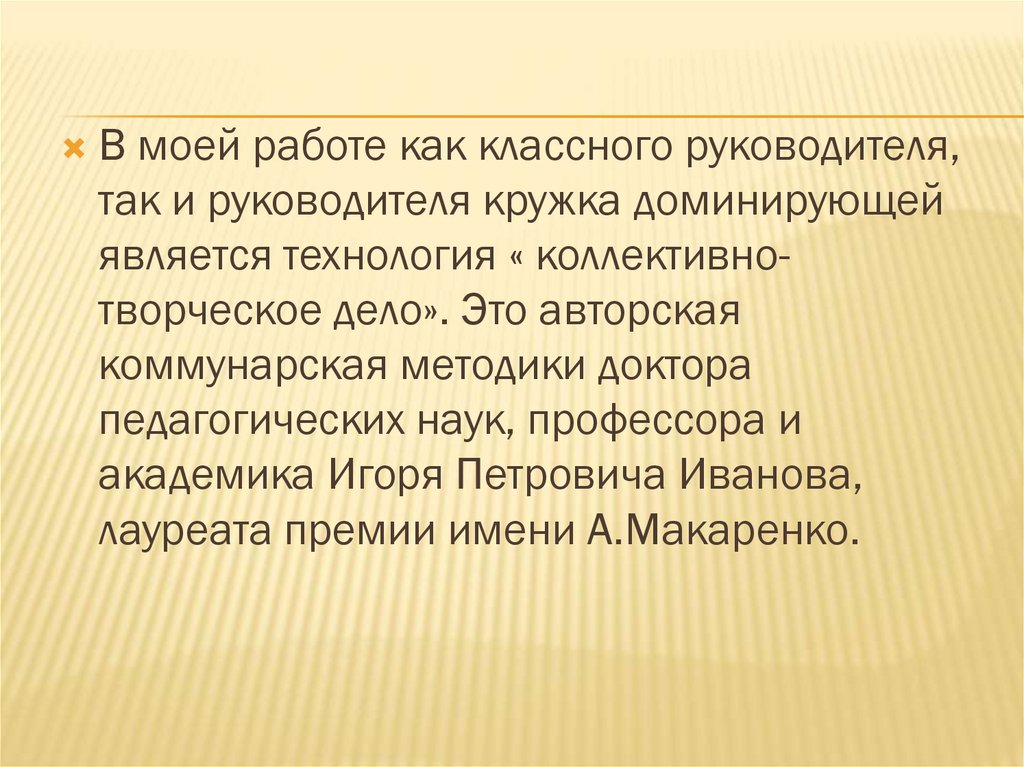 В моей работе как классного руководителя,так и руководителя кружка доминирующей