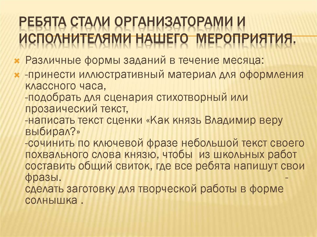 Владимиру. Сценарий был написан учителем с использованием некоторых