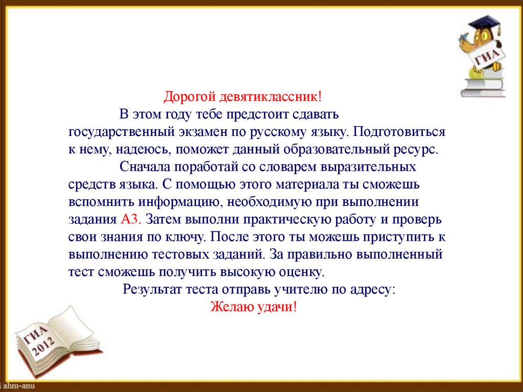 Дорогой девятиклассник!В этом году тебе предстоит сдавать