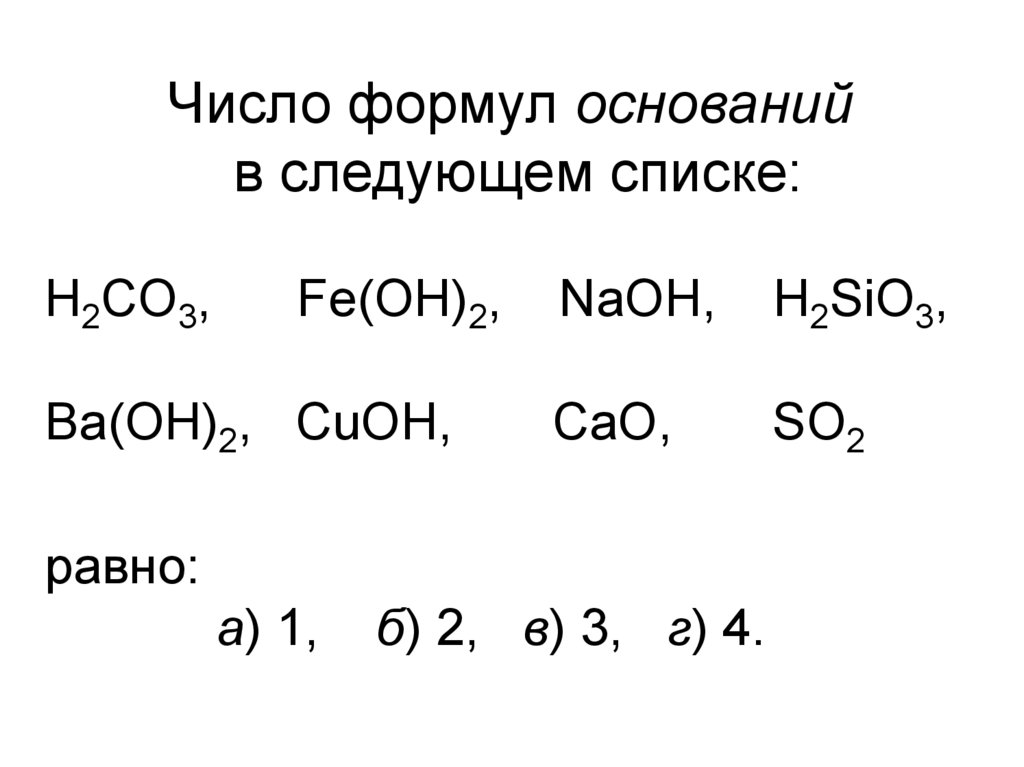 Число формул основанийв следующем списке: