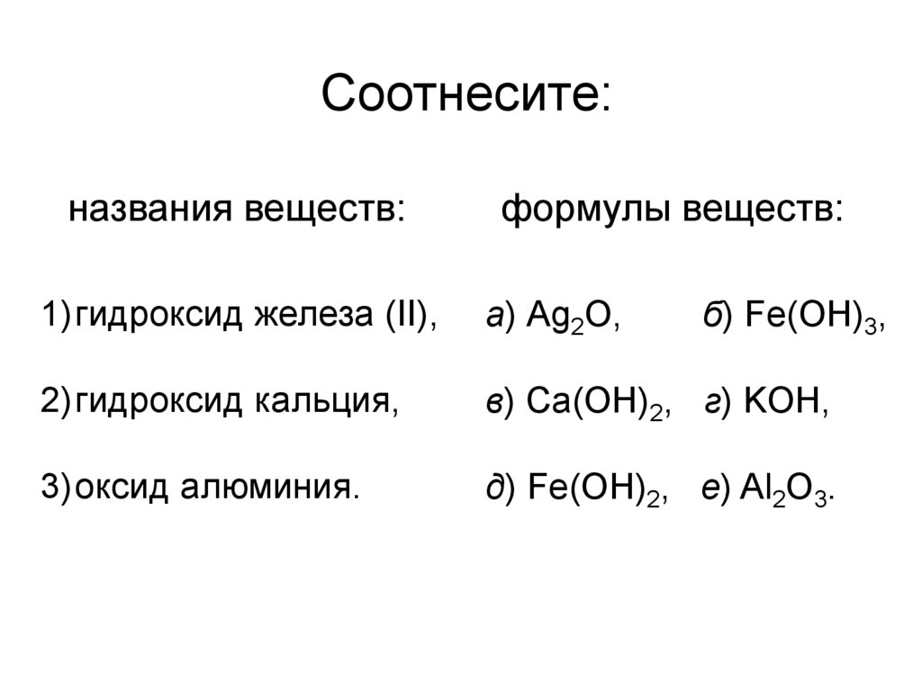 Соотнесите:названия веществ: