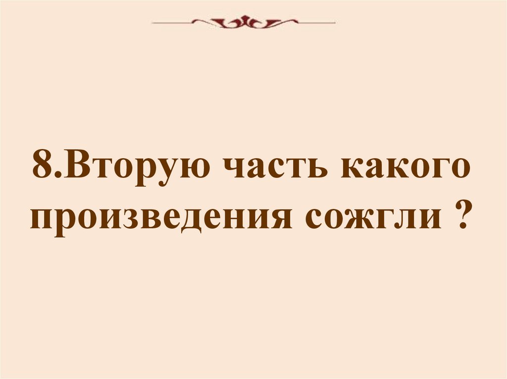 8.Вторую часть какогопроизведения сожгли ?