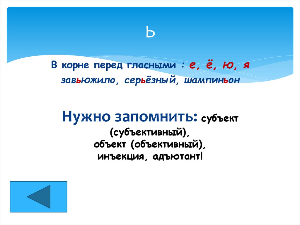 ЬВ корне перед гласными : е, ё, ю, я