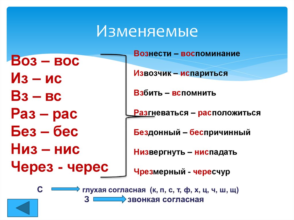 ПравописаниеИзменяемые