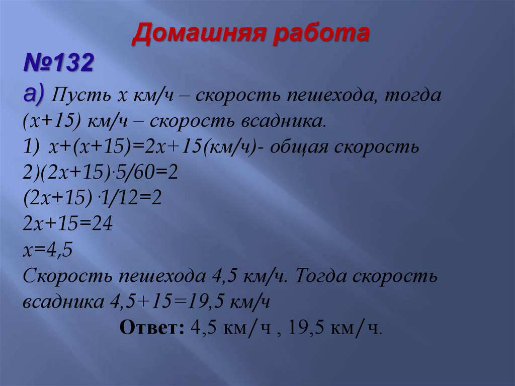 (x+15) км/ч – скорость всадника.