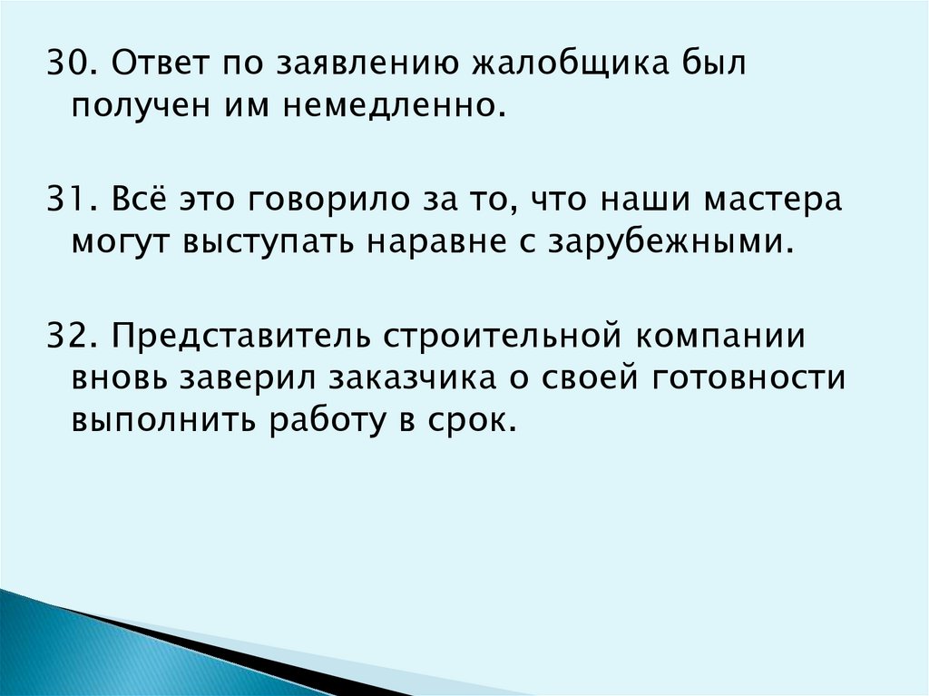 30. Ответ по заявлению жалобщика былполучен им немедленно.