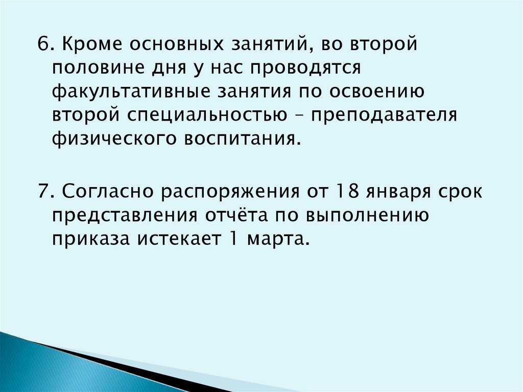 6. Кроме основных занятий, во второйполовине дня у нас проводятся