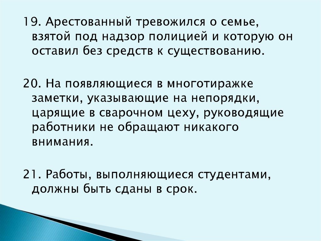 19. Арестованный тревожился о семье,взятой под надзор полицией и которую он