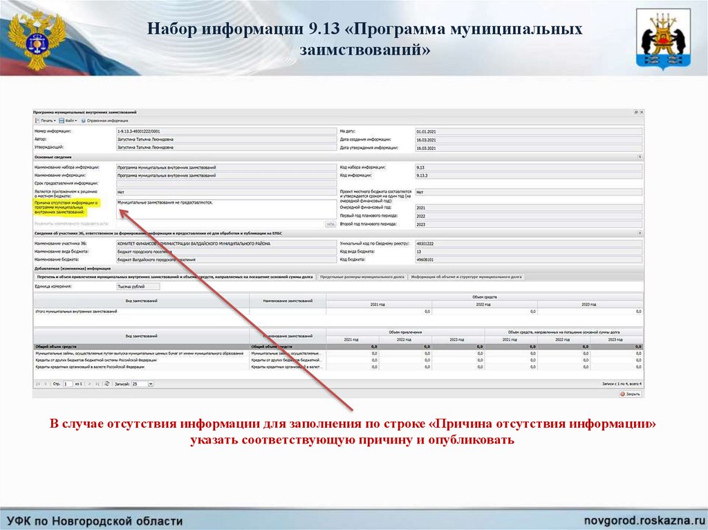 Набор информации 9.13 «Программа муниципальныхзаимствований»