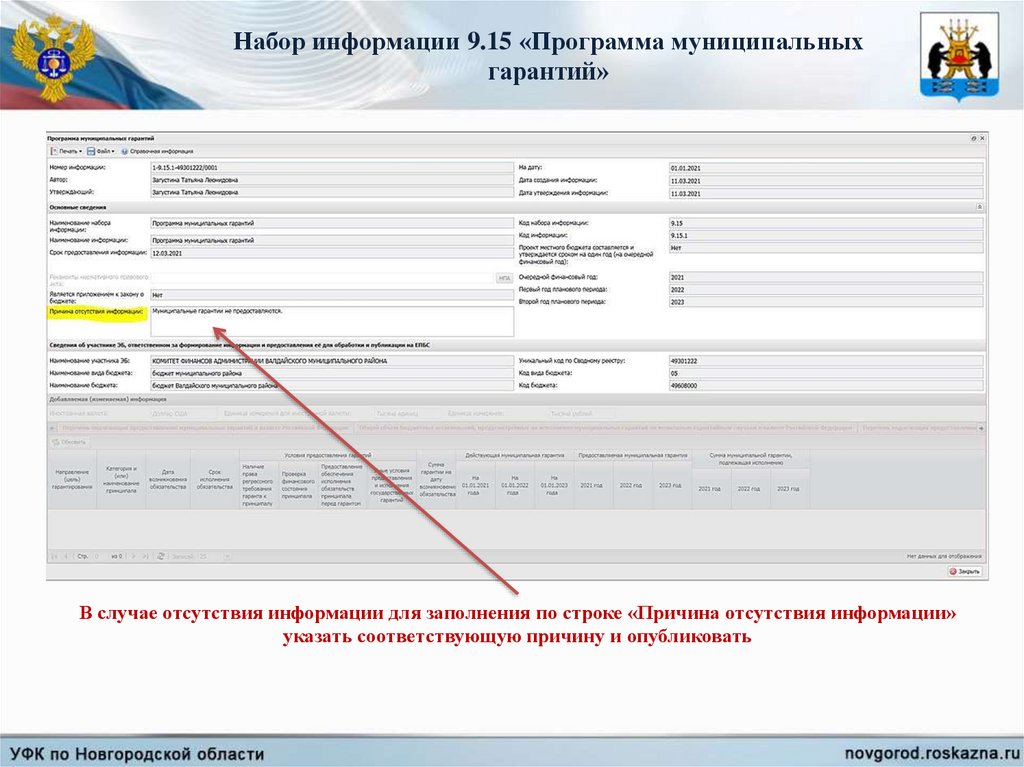 Набор информации 9.15 «Программа муниципальныхгарантий»