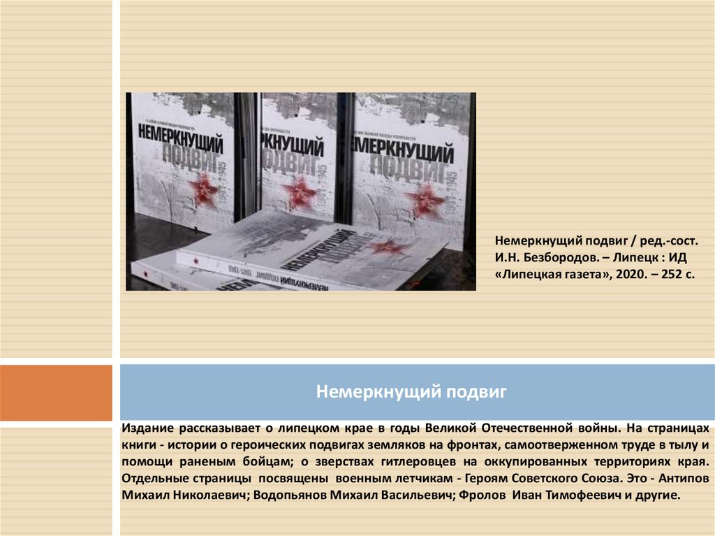 Немеркнущий подвиг / ред.-сост.И.Н. Безбородов. – Липецк : ИД