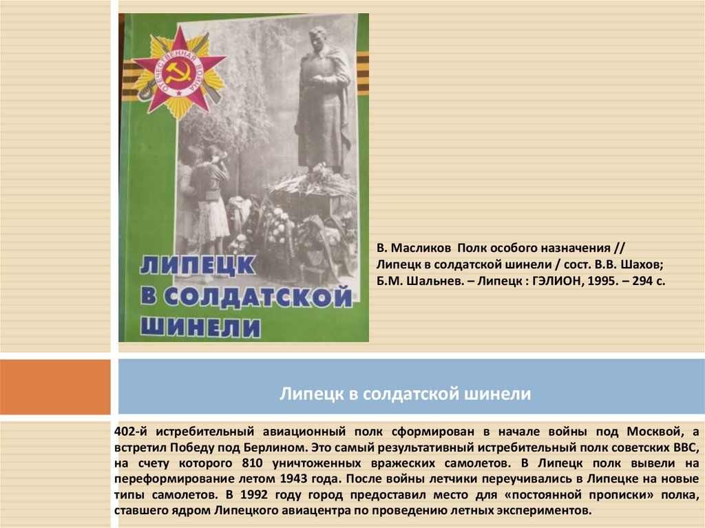 В. Масликов Полк особого назначения //Липецк в солдатской шинели / сост. В.В. Шахов;