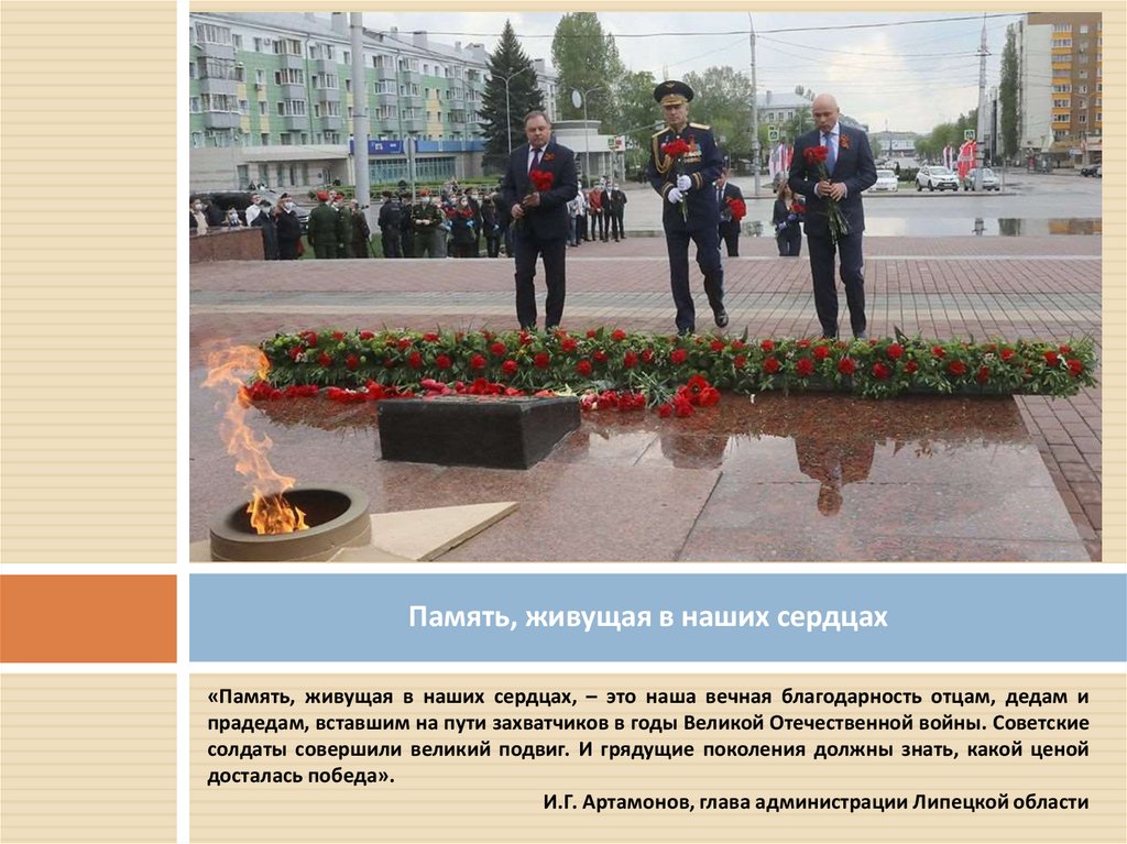 Память, живущая в наших сердцах«Память, живущая в наших сердцах, – это наша вечная благодарность отцам, дедам и