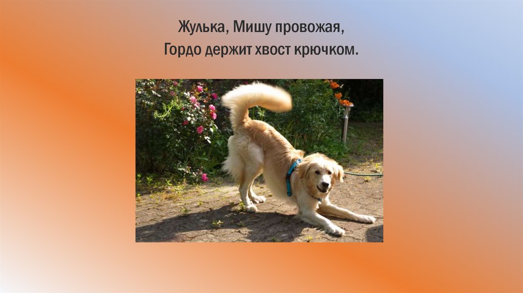 Жулька, Мишу провожая,Гордо держит хвост крючком.