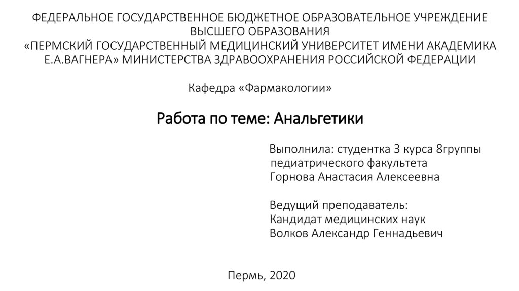 Работа по теме: Анальгетики