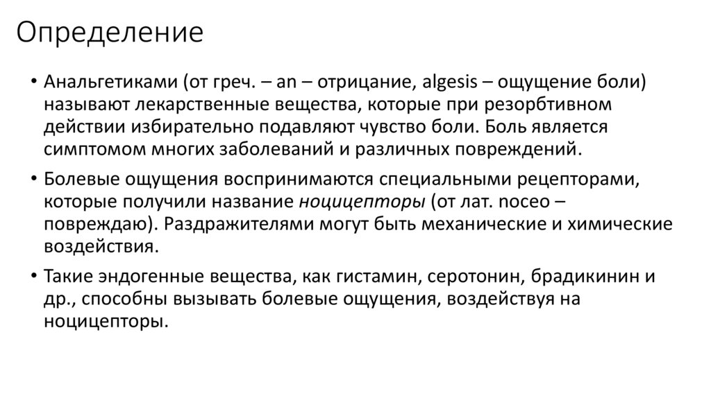 Анальгетики. Определение