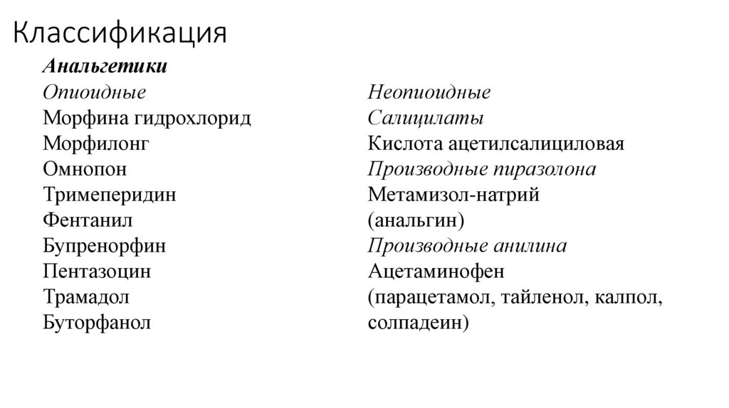 КлассификацияАнальгетики