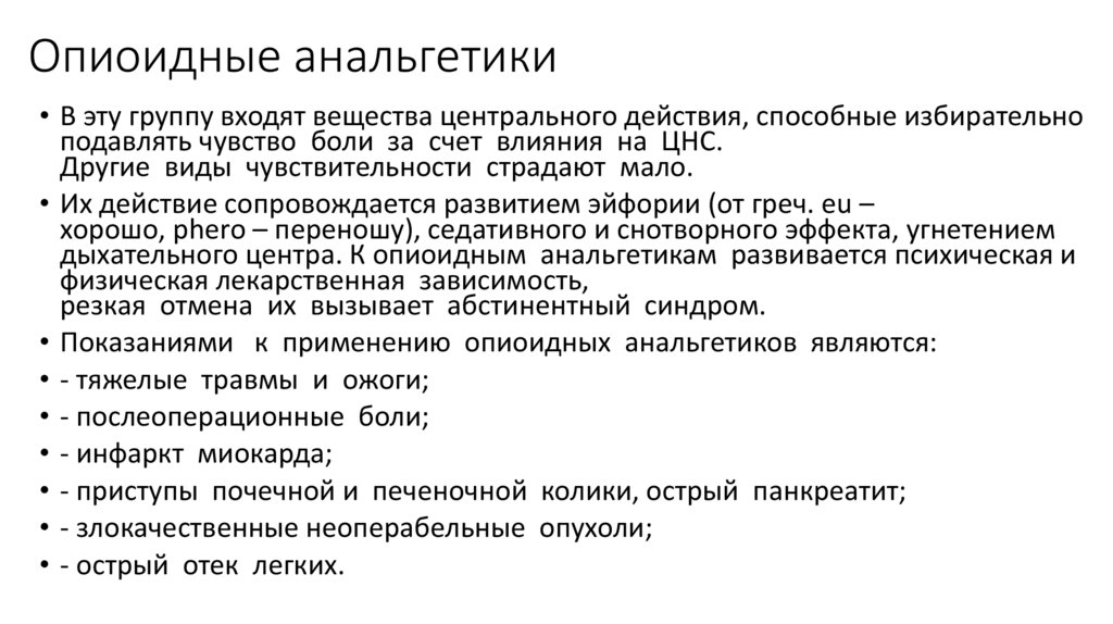 • Показаниями к применению опиоидных анальгетиков являются: