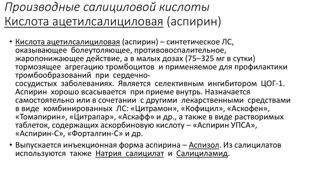 Производные салициловой кислотыКислота ацетилсалициловая (аспирин)