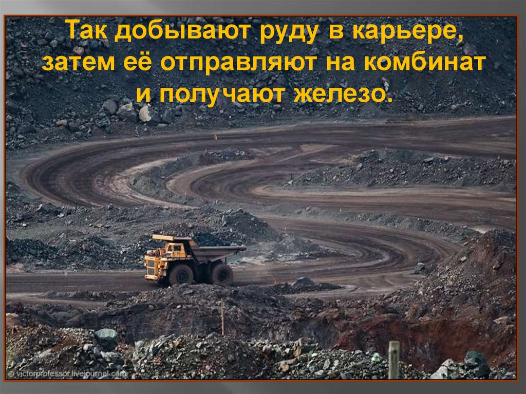 Так добывают руду в карьере,затем её отправляют на комбинат