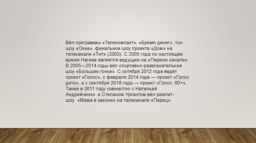 время Нагиев является ведущим на «Первом канале».