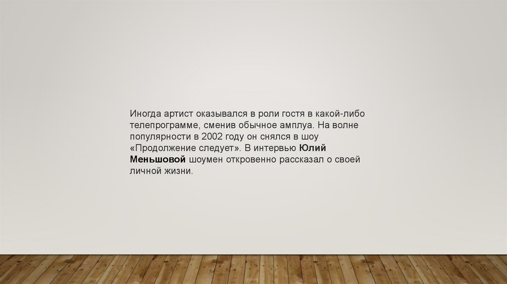 Меньшовой шоумен откровенно рассказал о своей