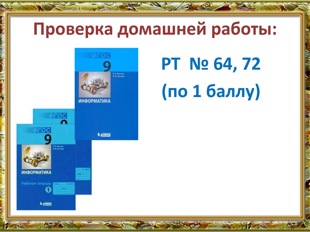 Проверка домашней работы:РТ № 64, 72