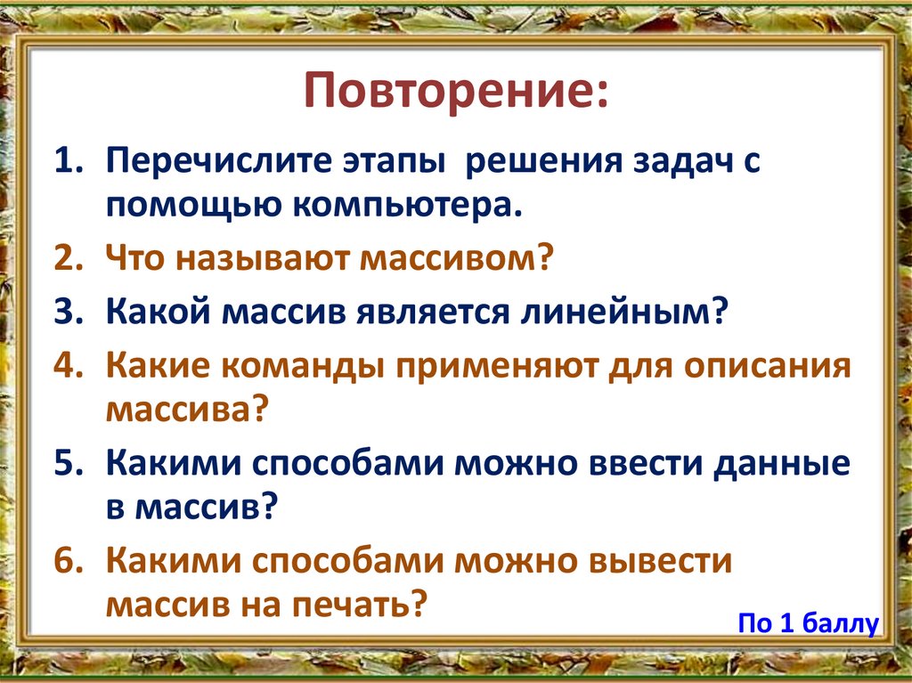 По 1 баллу