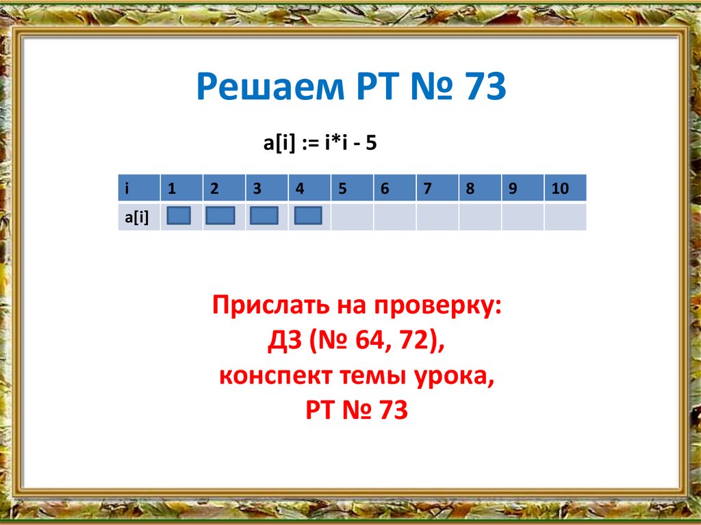 Решаем РТ № 73a[i] := i*i - 5