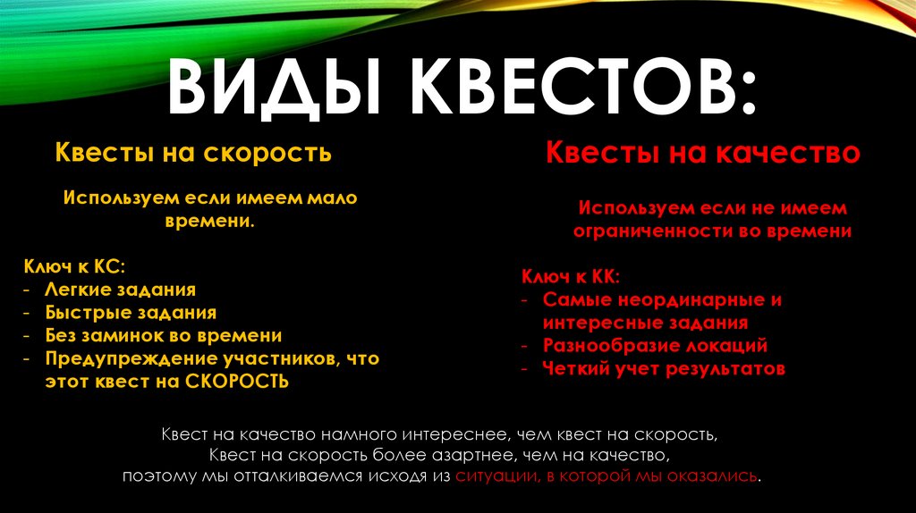 ВИДЫ КВЕСТОВ:Квесты на скорость