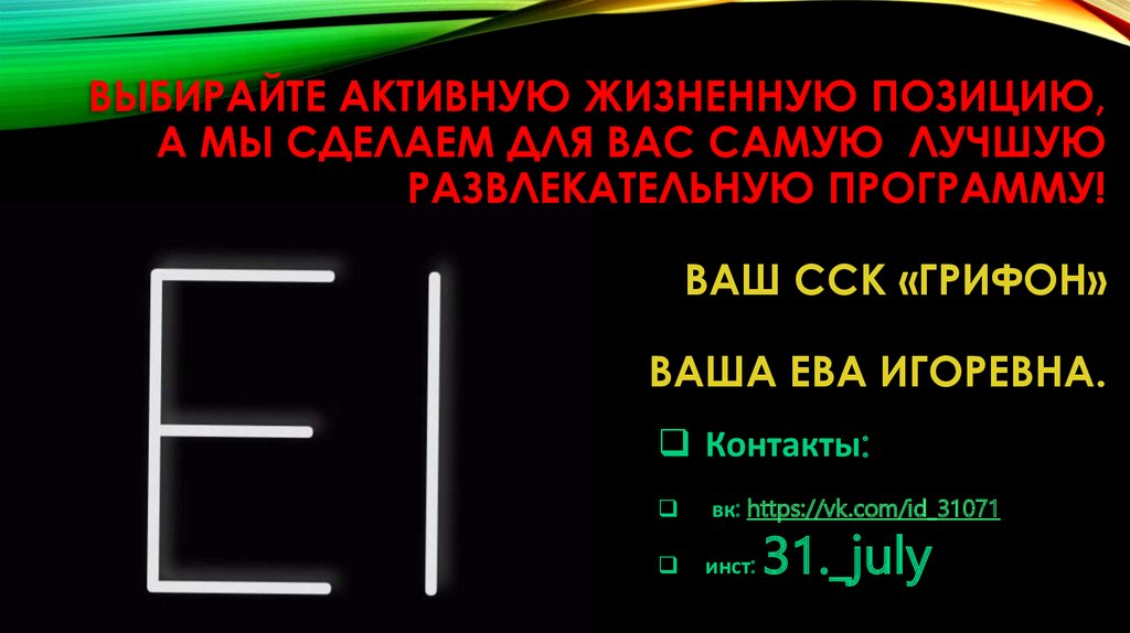 ВЫБИРАЙТЕ АКТИВНУЮ ЖИЗНЕННУЮ ПОЗИЦИЮ,А МЫ СДЕЛАЕМ ДЛЯ ВАС САМУЮ ЛУЧШУЮ