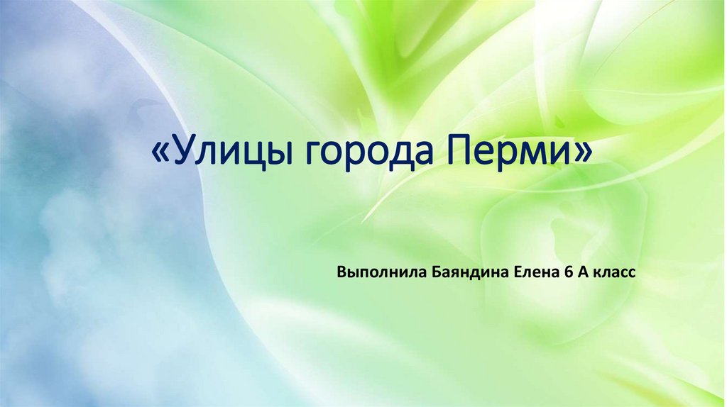 «Улицы города Перми»Выполнила Баяндина Елена 6 А класс