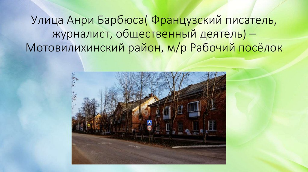 Улица Анри Барбюса( Французский писатель,журналист, общественный деятель) –