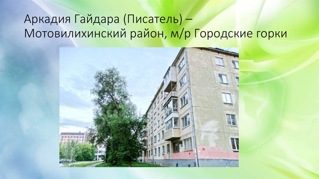 Аркадия Гайдара (Писатель) –Мотовилихинский район, м/р Городские горки