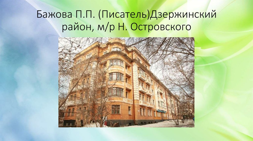 Бажова П.П. (Писатель)Дзержинскийрайон, м/р Н. Островского