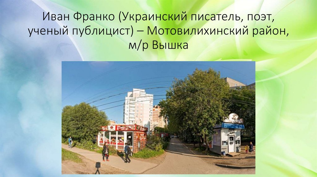 Иван Франко (Украинский писатель, поэт,ученый публицист) – Мотовилихинский район,