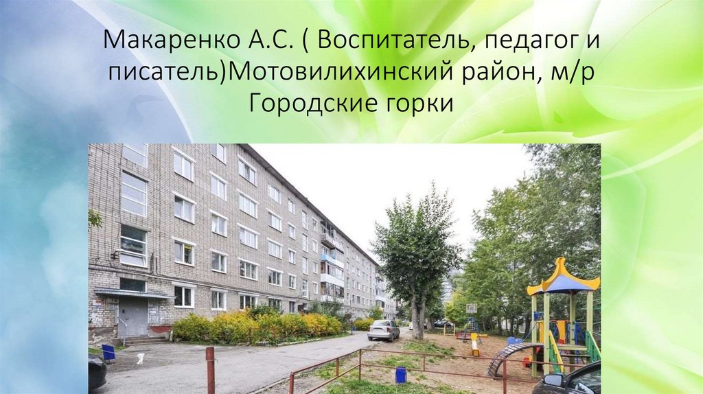 Макаренко А.С. ( Воспитатель, педагог иписатель)Мотовилихинский район, м/р