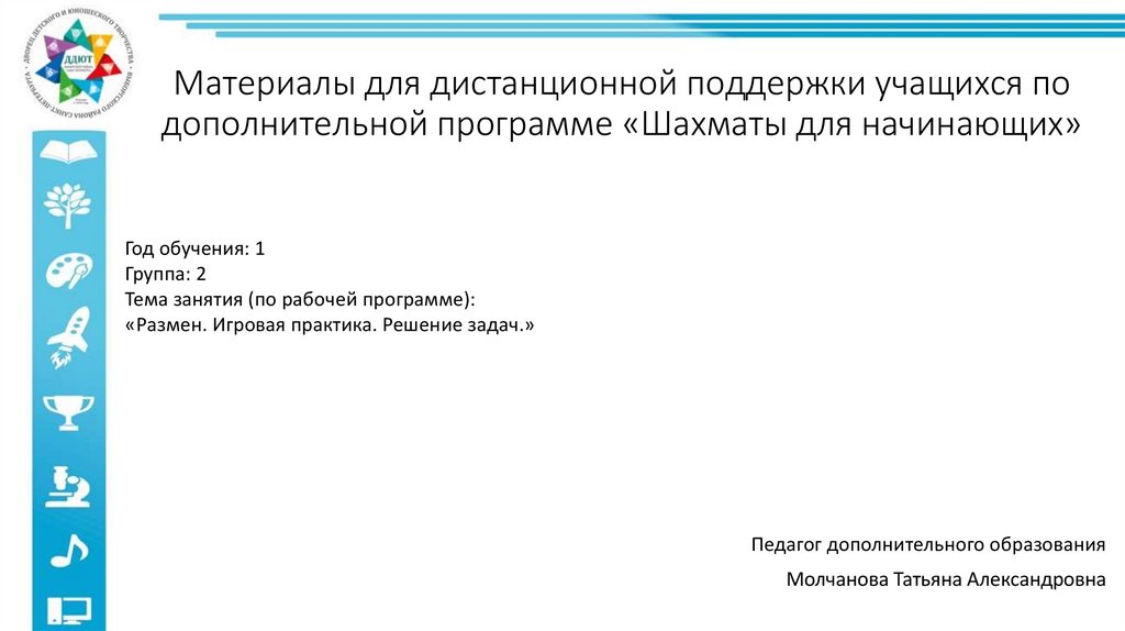 Материалы для дистанционной поддержки учащихся по дополнительной программе «Шахматы для начинающих»