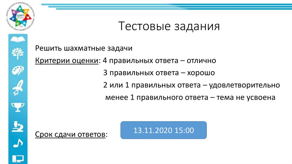 Тестовые заданияРешить шахматные задачи