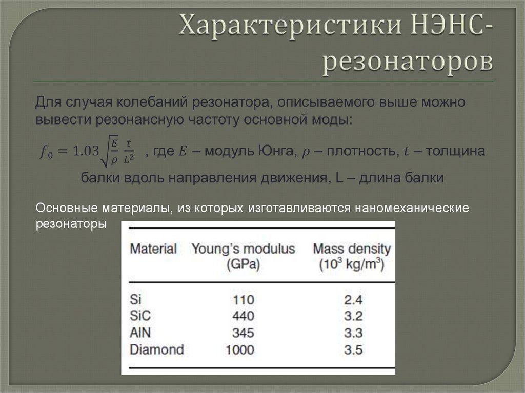 Основные материалы, из которых изготавливаются наномеханическиерезонаторы