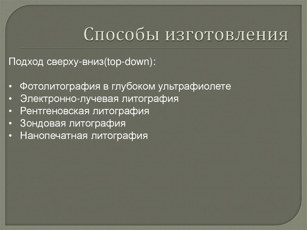 сверху-вниз, электроннолучевая литография):